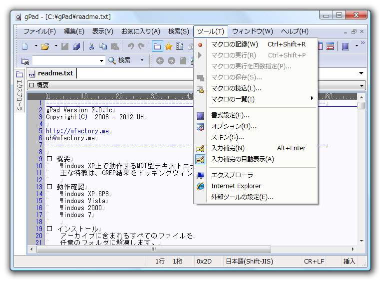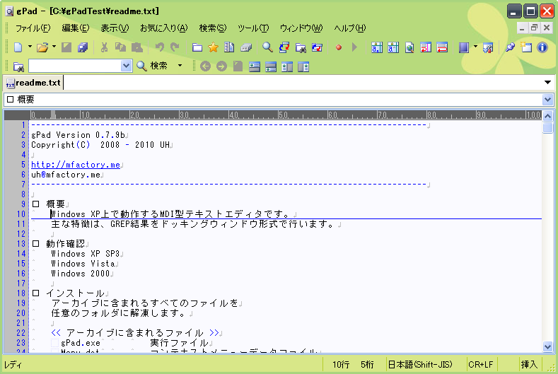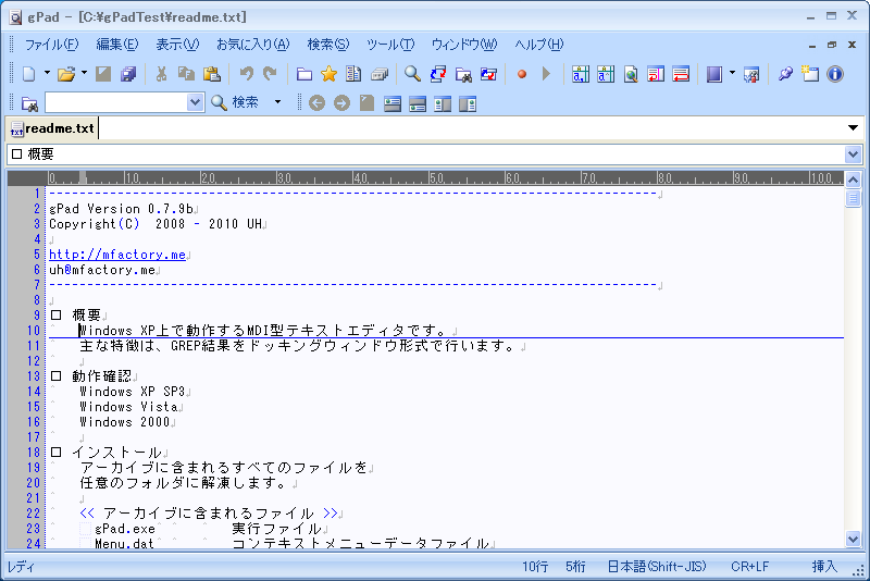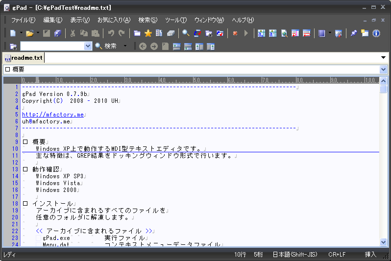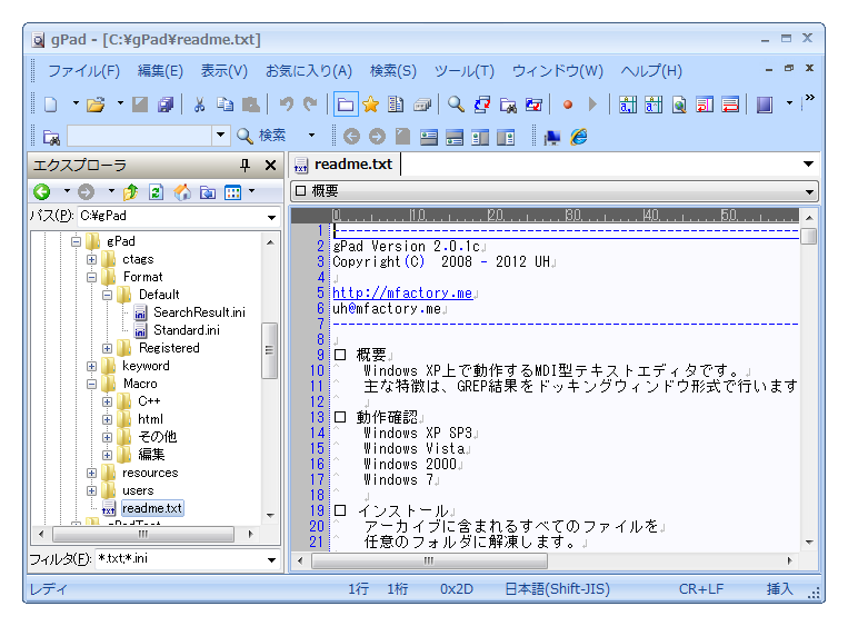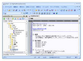 gPad は Windows で動作するMDI型テキストエディタです。 主な特徴は、GREP結果をドッキングウィンドウ形式で行います。